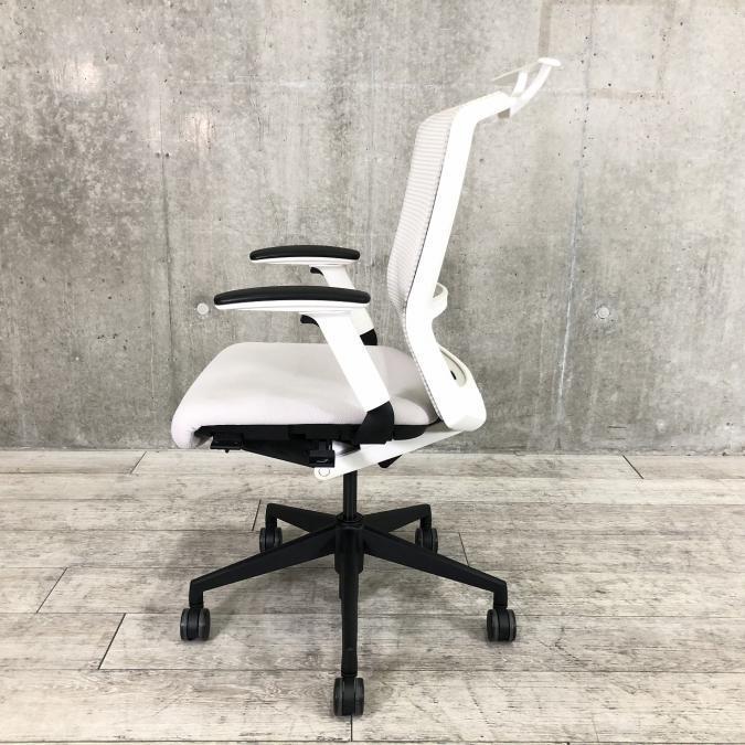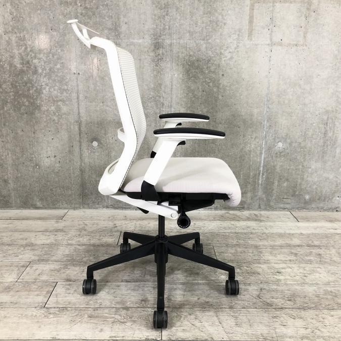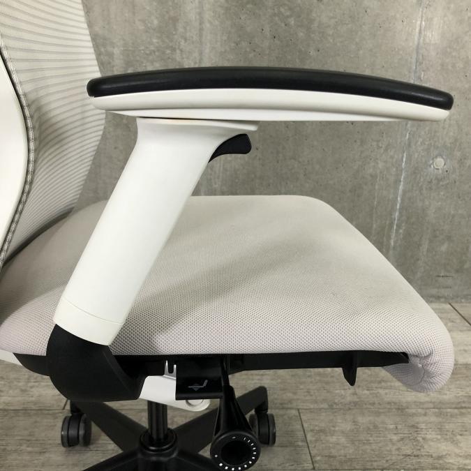 また、個人的にオススメなのは『フルアジャスタブル肘』というアーム部分が斜め前に伸びていくタイプの肘置きを搭載したモデルです。高さを上げれば上げるほどパッドが前方に迫り出していくので、デスクワークの際にちょうど肘を置きたい場所に肘置きがきます。これがとても快適なので、ぜひ一度お試しいただきたいです!*エルフィチェアの肘パーツはフルアジャスタブル肘の他に、固定肘、アジャスタブル肘などがあります。