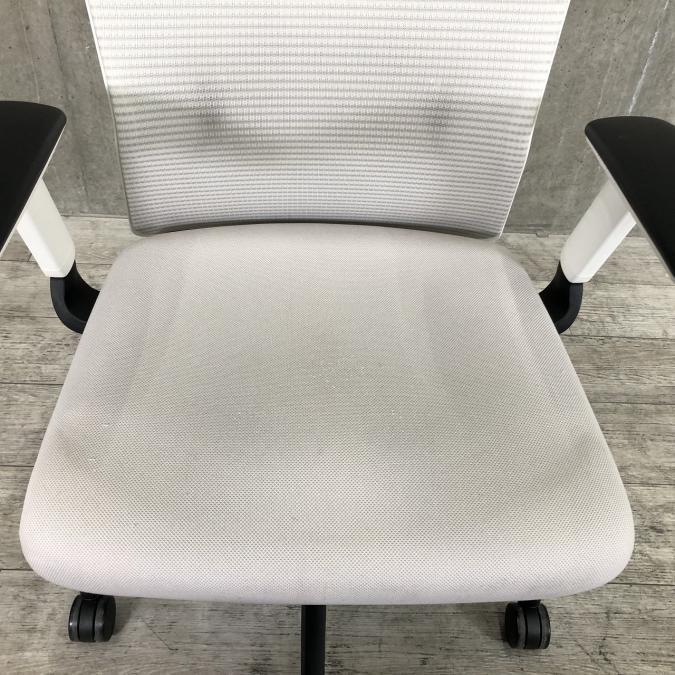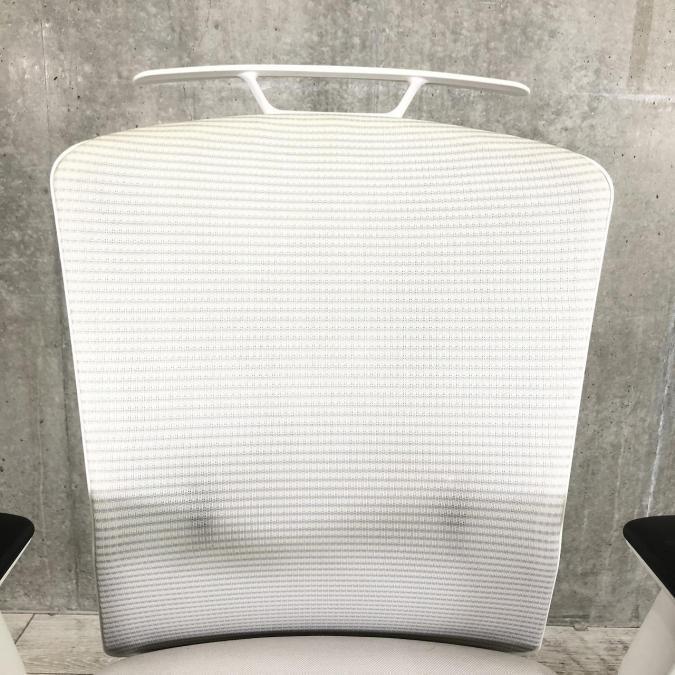 もちろん見た目だけでなく、オフィスでの使いやすさも考えられています。例えば、普通のチェアでは離着席時に背もたれを持つので、背もたれの上部が少しずつ汚れてきます。しかし、エルフィでは、背もたれのフレームに取っ手がついており、それを押し引きできるので、クッションやメッシュを汚すことなく綺麗な状態で長くお使いいただくことができます!