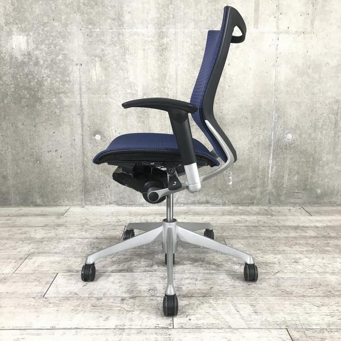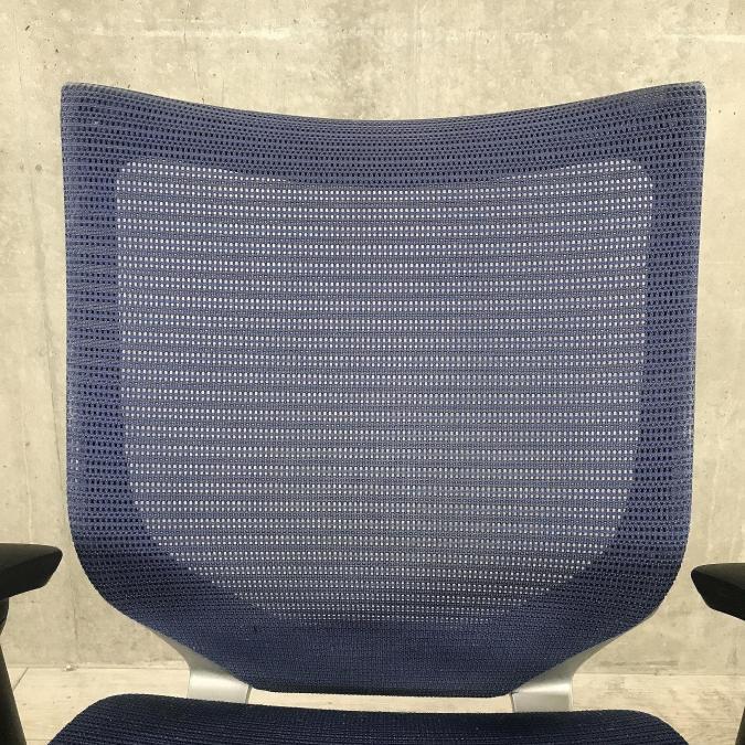 【座面が大人気!国産メッシュチェアの代表格!】■オカムラ(okamura)製 バロン(Baron)チェア ローバック 肘付き ■背面メッシュ ■固定肘 ■色:ダークブルー ■ハンガー付き