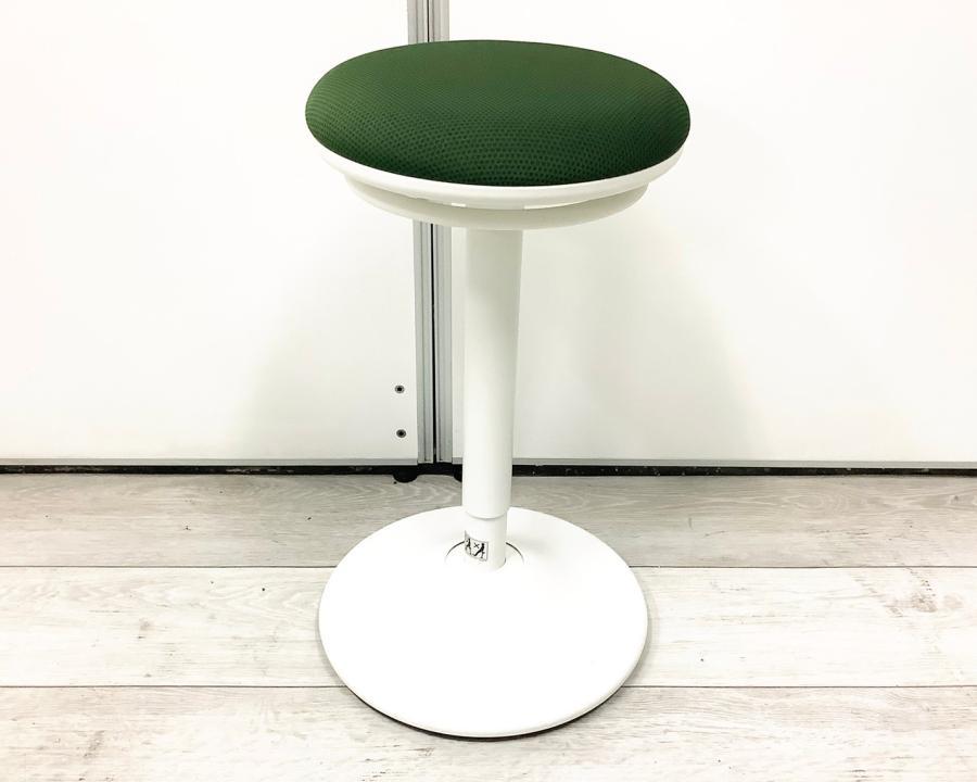 【「座る」と「立つ」のいいとこ取り!】■オカムラ(okamura) ピルエット(pirouetto) カウンターチェア スツール ■グリーン シェル:ブラック【高さ調節可能なパーチングスツール!】 ABW