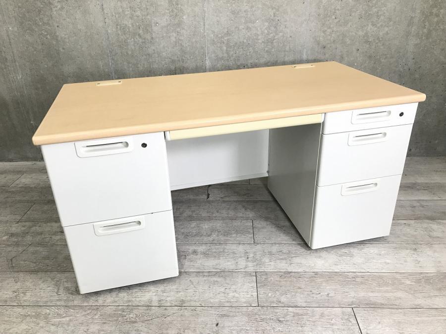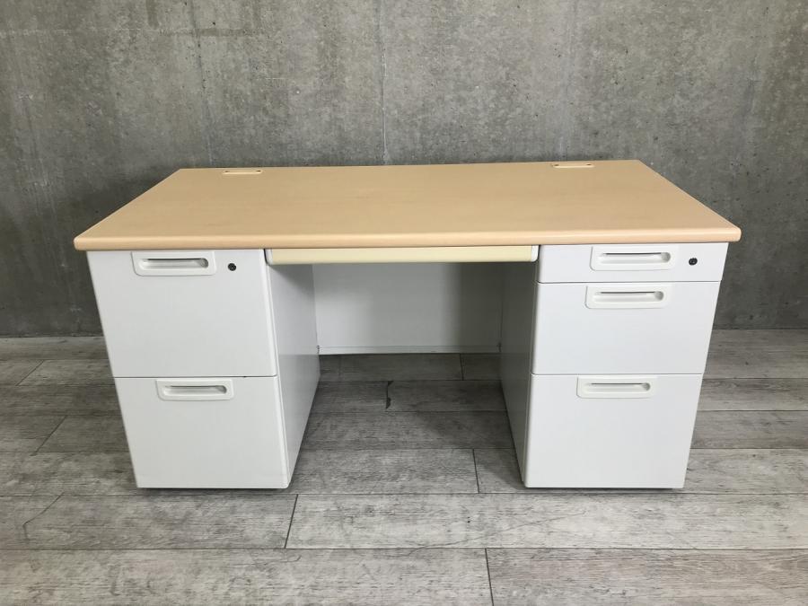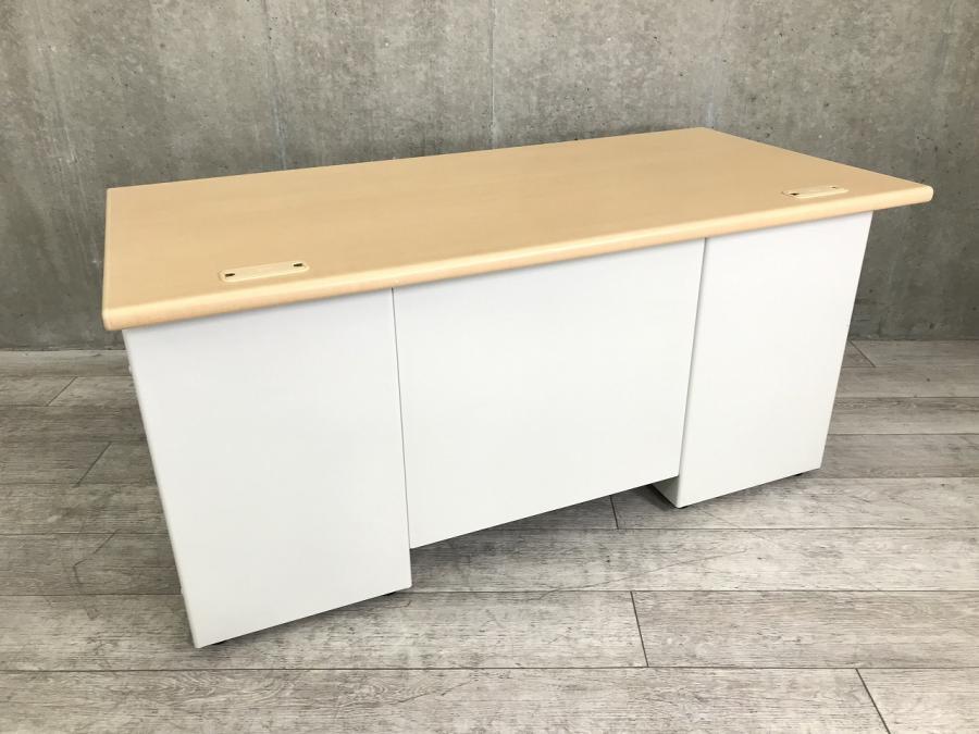 【3台入荷】【状態要考慮】本体まっしろホワイト&天板ナチュラルテイスト⇒役職者様向け!LAシリーズ両袖机◆オカムラ製【RP】- 埼玉本店
