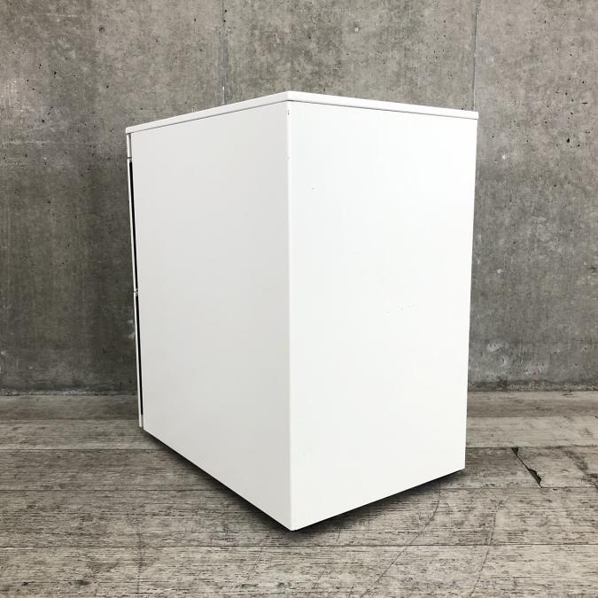 【正面に取っ手が無いフラットなデザイン!キャスター付でレイアウト変更がスムーズ!】■オカムラ(okamura)製 プロユニットシリーズ 3段ワゴン フリアド用ワゴン H650㎜ ■ホワイト ■シリンダー錠 ※キズ・塗装剝がれ有