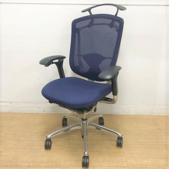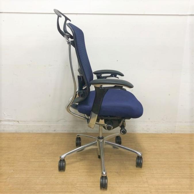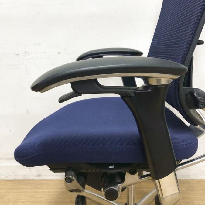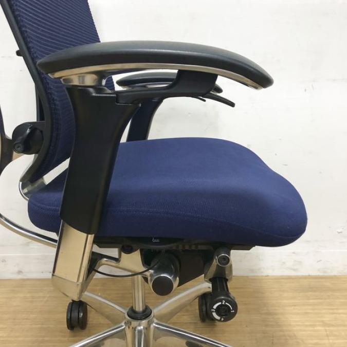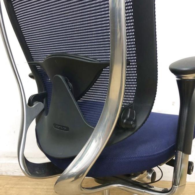 【オカムラ製の最高級チェアが残り1脚限りです!!】オフィスバスターズ 東大阪店 オカムラ製 コンテッサ シリーズ ダークブルー アジャストアーム※可動肘 背/座面メッシュ ランバー 世界で認められた革新的タスクチェア!人間工学に基づいた快適な座り心地を実現! 肘付きハイバックチェア!! 中古 外部倉庫品