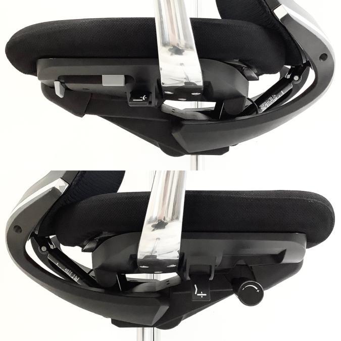 座面左前側のレバーを操作することで、前縁が20mm前傾した状態と、通常位置の選択ができます。