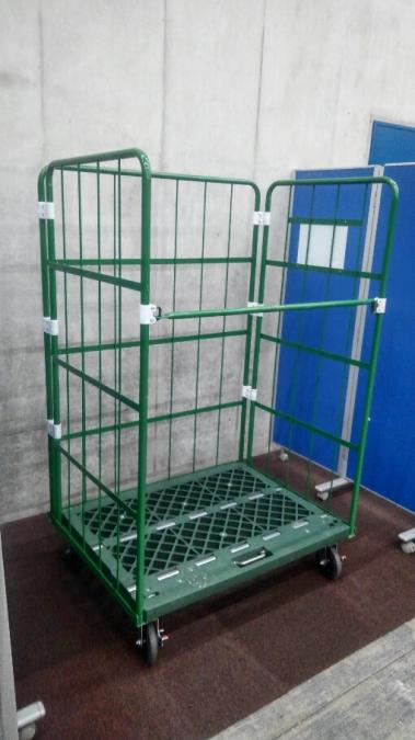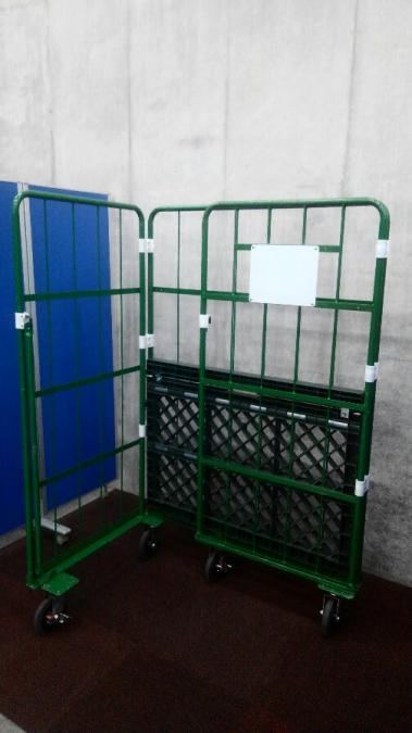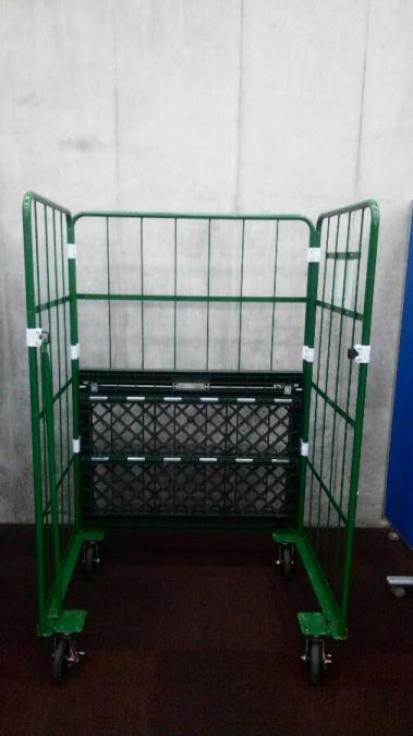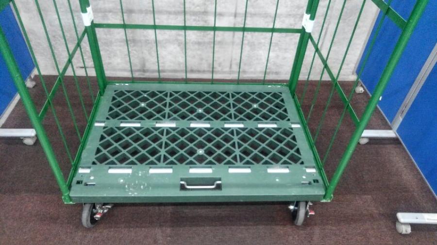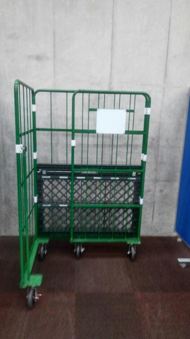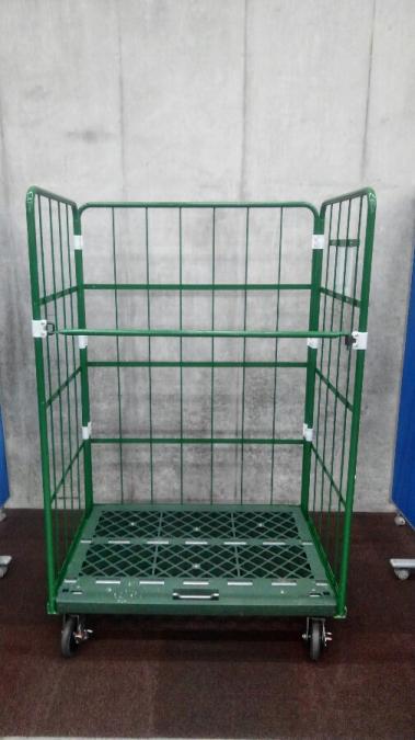 グリーン色のカゴ台車が1台入荷致しました! 4輪自在・前輪ストッパー!! 最大積載荷重:500kgまで ※マテハン本舗の中古商品は、千葉県柏市に在庫がございます。- マテハン本舗