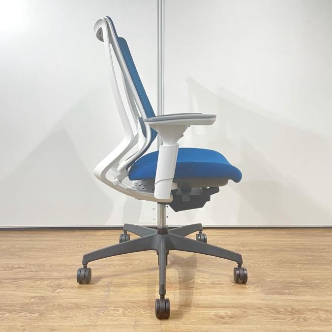 【在庫セール品】【定価約14万円】【二重フレーム構造がもたらすしなやかで美しい背もたれ機能!簡易操作で自分に合った姿勢をサポート!】■コクヨ(KOKUYO)製 デュオラ(Duora) 肘付き ハイバック ■背面メッシュ ■可動肘 ■ターコイズブルー×ホワイトシェル