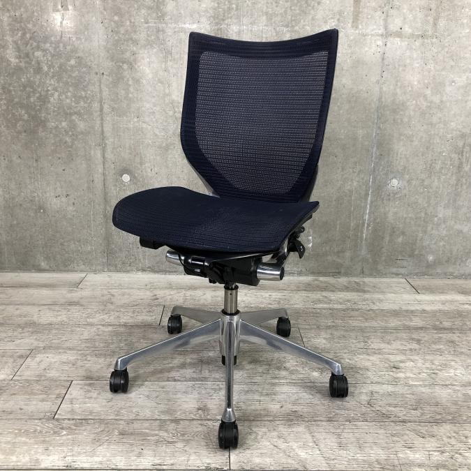 【在庫入替セール品】【オフィスの執務室、会議室におすすめ!】■オカムラ(okamura)製 バロン(Baron)チェア ローバック 肘無し ■背面メッシュ ■色:ダークブルー【国産メッシュチェアの代表格!】
