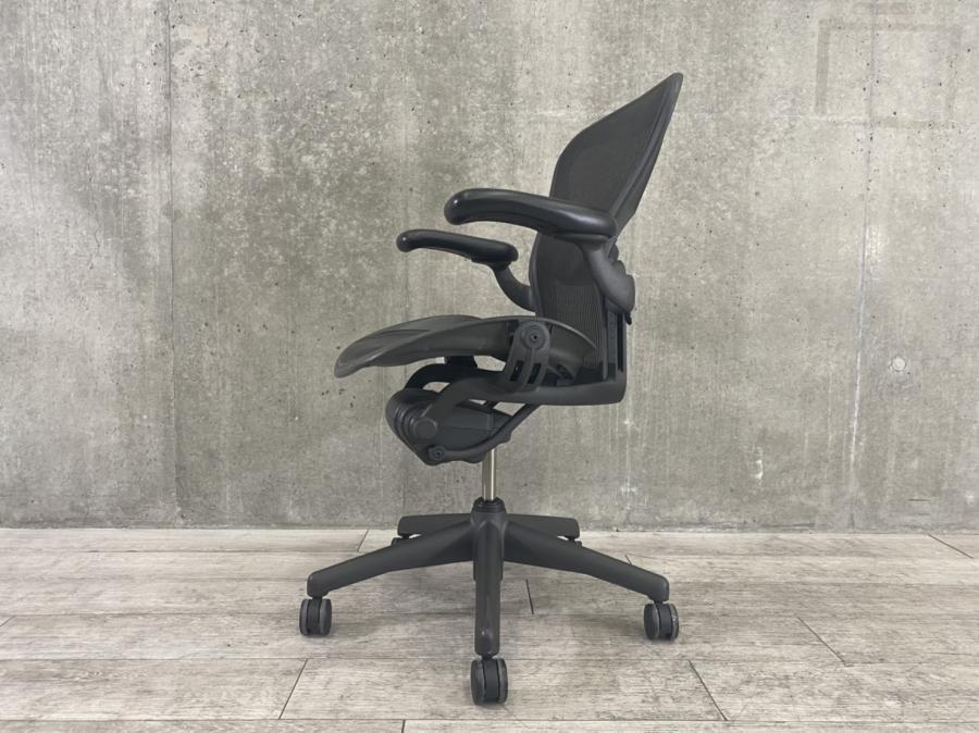 【遠方倉庫在庫品】不動の人気!高級チェアの大定番!!Aeron Chair !!【AO】 ■ハーマンミラー/アーロン/ブラック Bタイプ 上下昇降のみ ランバーサポート付・肘可動式サーキュラーバリューCO2削減量の算出について