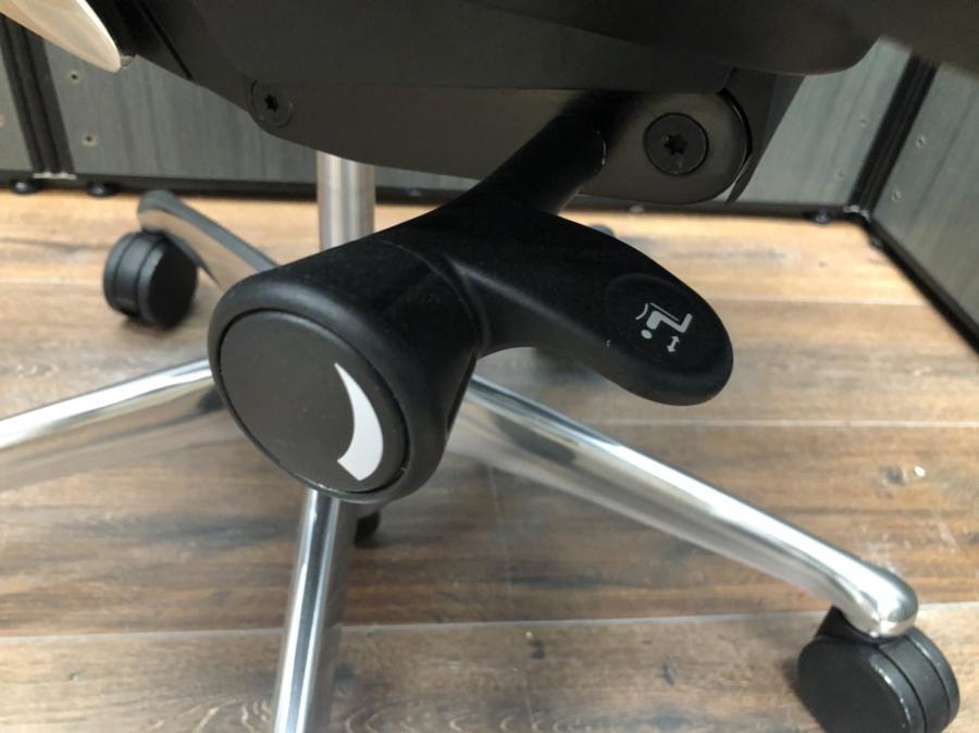 右肘先端のレバー操作で座面の高さ調整ができます。