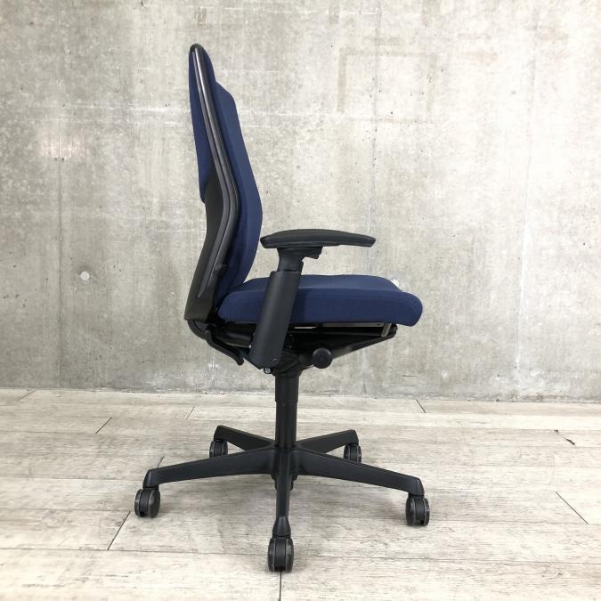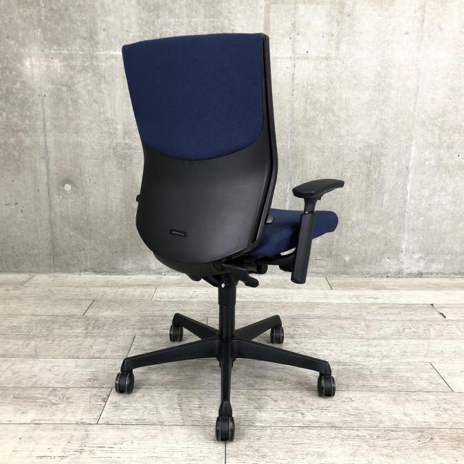 【背中全体をサポートするハイバックタイプ!】■オカムラ製 エスクードチェア 可動肘付 ダークブルー ■腰にフィットするランバーサポート!【412249】☆- 川崎店