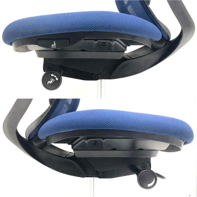 - 座面の左にあるレバー操作により、座面の奥行き調整が可能です。(ストローク:50mm)