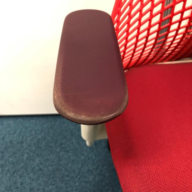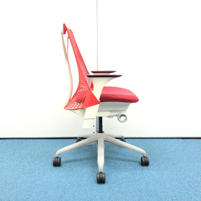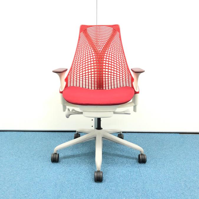 【1脚限定!!】HermanMiller(ハーマンミラー)/SAYL Chair(セイルチェア) 中古 デザイナーズ テレワーク 在宅ワーク リモートワーク ハーマンミラー製 レッド 稼働肘付き 前傾チルト- オフィスチェア店