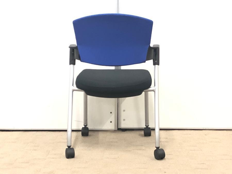 【ふっくらクッションで快適!】■コクヨ製 プロッティチェア ブルー キャスター付 ■リラックスできる肘付チェアー!- 茨城南店