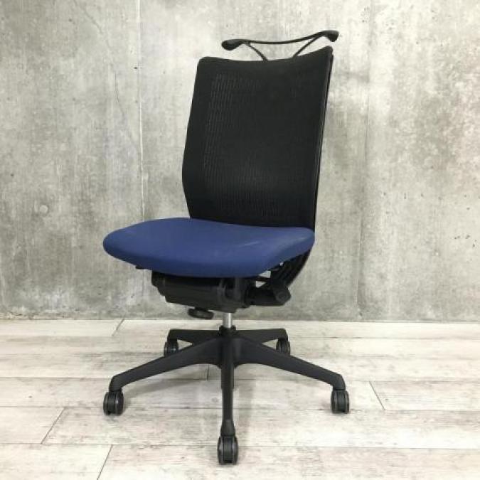 【在庫入替セール品】オカムラ(okamura)ヴィスコンテチェア ■色:ブルー(ブラックシェル)肘無し ハイバック仕様