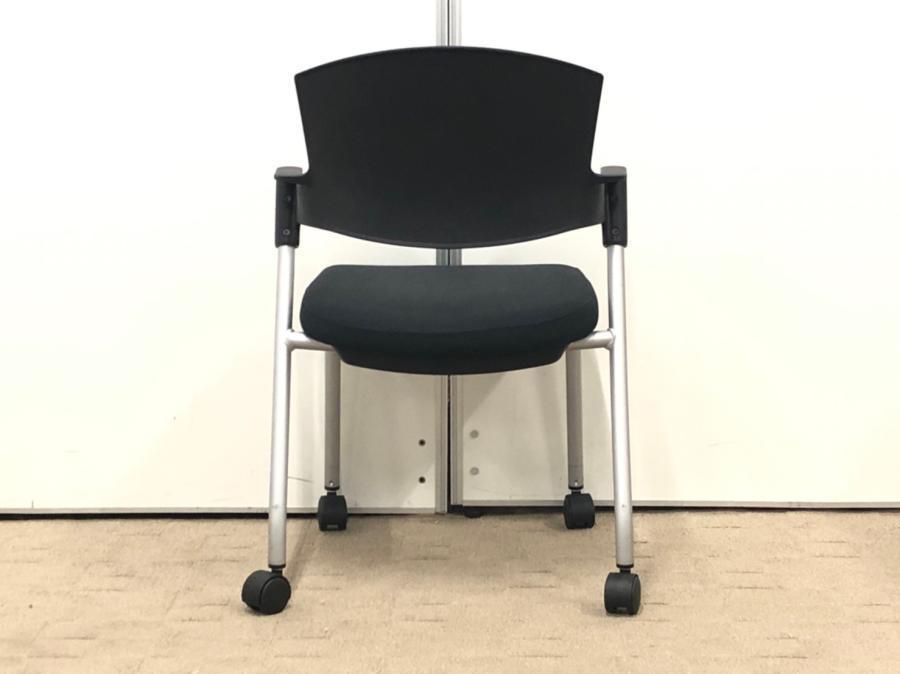 【シンプルスマートなスタッキングチェア!分厚いクッションで長時間でも快適な座り心地!】■スタッキングチェア 肘付ミーティングチェア ■固定肘 ■キャスター付 ■ブラック ■背面樹脂/コクヨ(KOKUYO/プロッティ