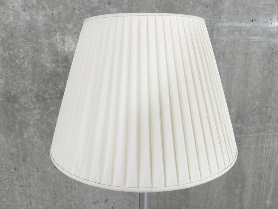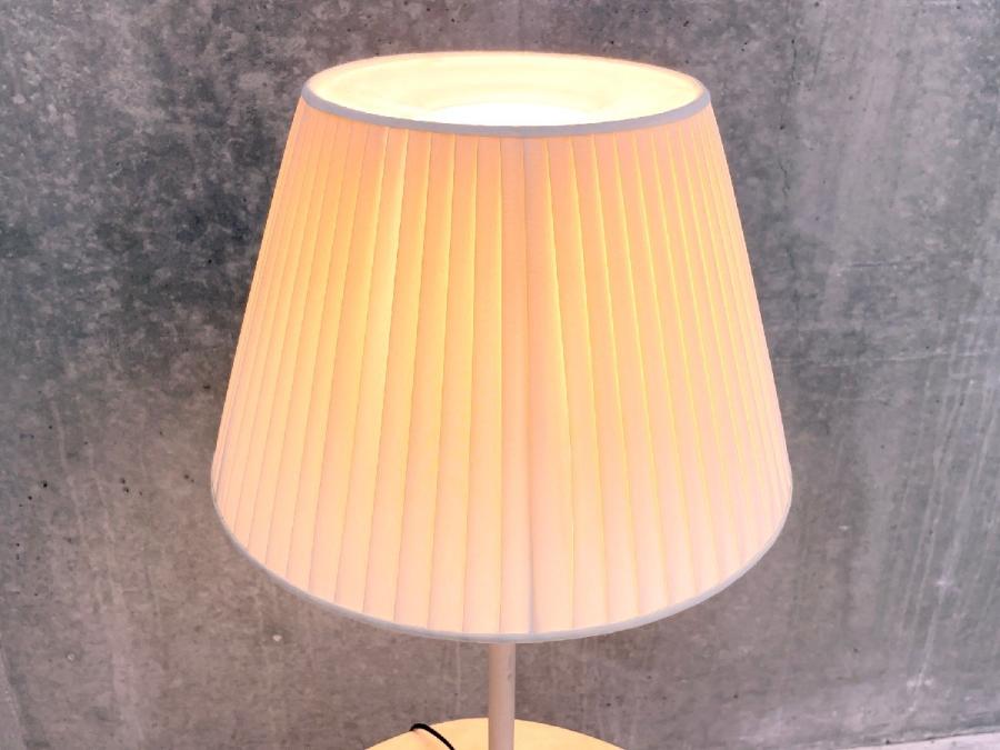 フィリップ・スタルクデザインのモダンでハイテックな空間はもちろん、トラディショナルな空間にもよく合うテーブルスタンド。内側のフロストガラスと外側のプリーツのファブリックセードがやさしい光を空間に広げる美しい作品です。