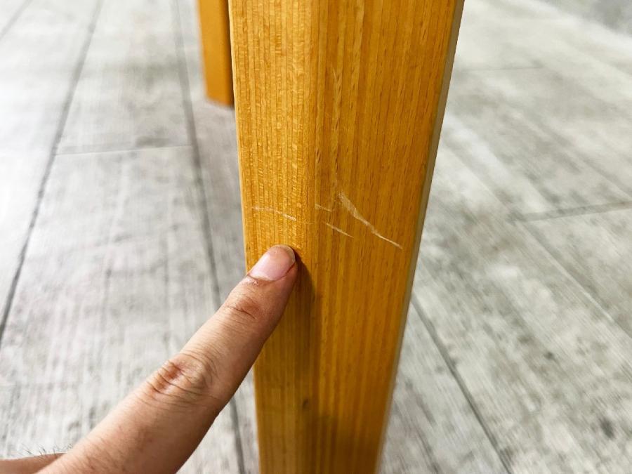 - 目立つ箇所あり傷・凹みが多数、深い傷・凹みが一部ある。(例、天板、幕板、棚板、サイド部分、脚部等にある。)