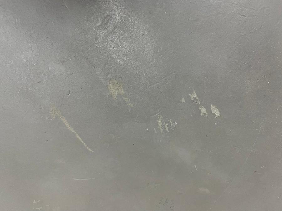 - 目立つ箇所複数あり深い傷・凹みが商品全体にある。(例、天板、幕板、棚板、サイド部分、脚部等にある。)