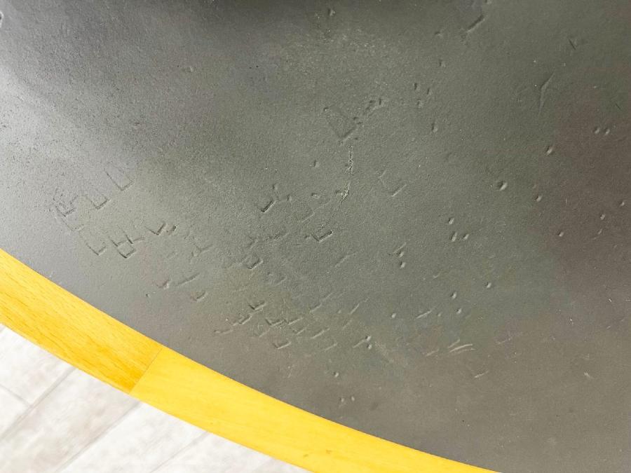 - あり黄ばみ・変色が広い範囲にうっすらある、または濃い黄ばみ・変色が一部ある。(例、天板、幕板、棚板、サイド部分、脚部等にある。)