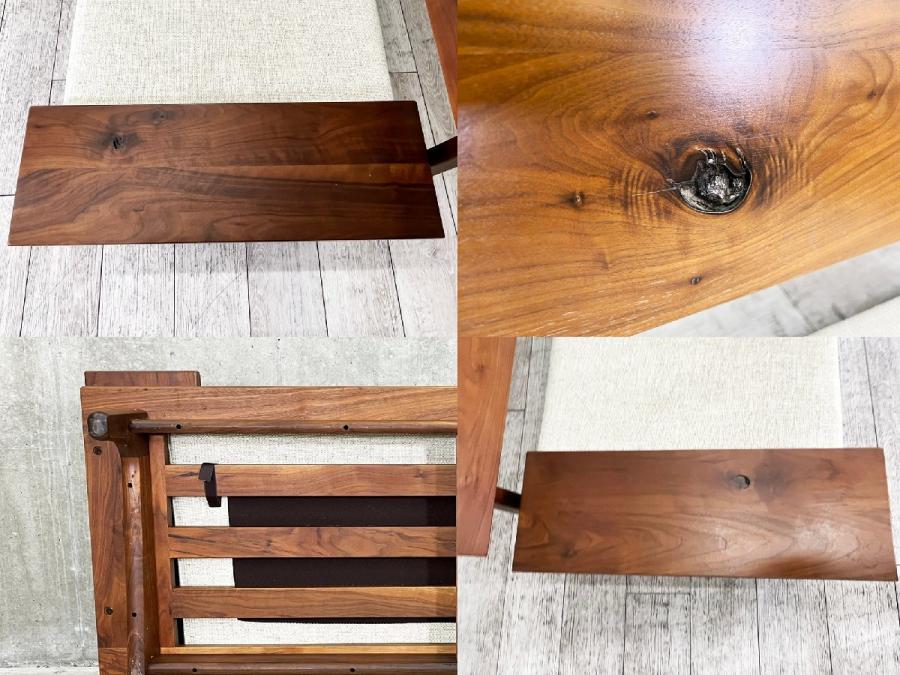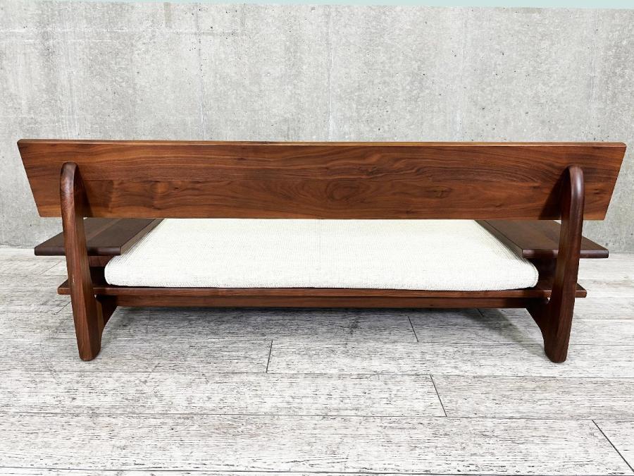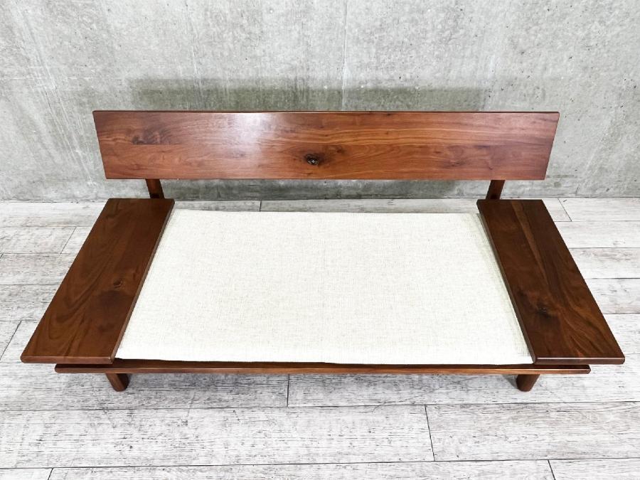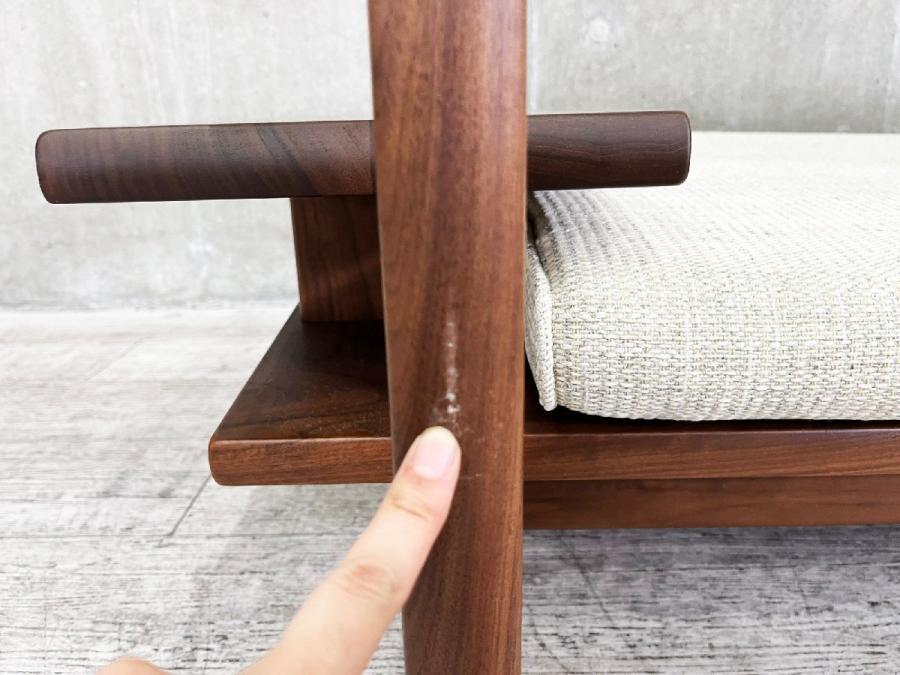飛騨産業より「節」をデザインとして取り入れ、木の表情をそのまま活かし作られたウォールナット材の2人掛けソファ『森のことば』です。