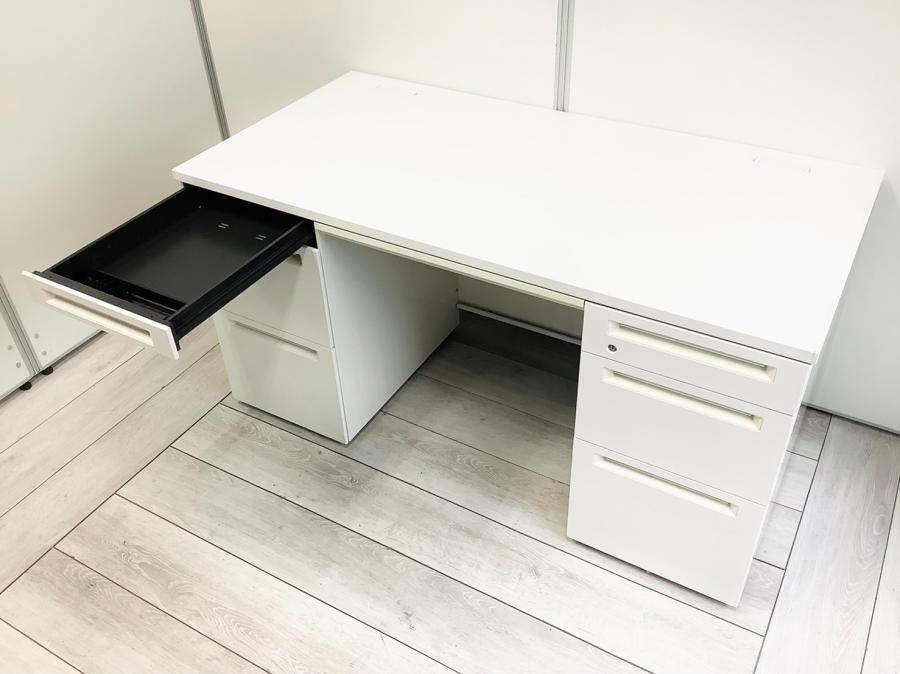 定番/大人気/希少 オカムラ(okamura)製 アドバンス 両袖机 幅1400㎜ ■ホワイト ■シリンダー錠