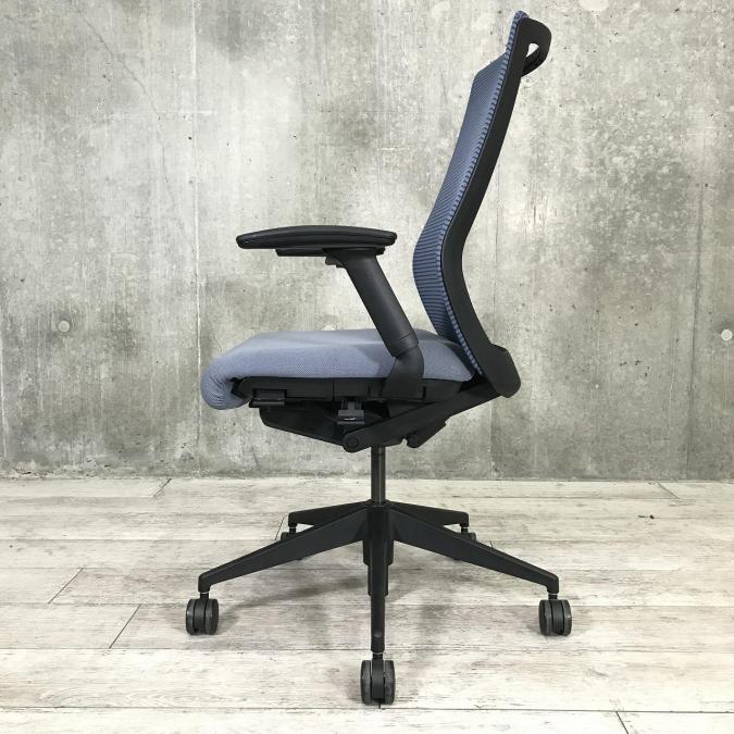 また、個人的にオススメなのは『フルアジャスタブル肘』というアーム部分が斜め前に伸びていくタイプの肘置きを搭載したモデルです。高さを上げれば上げるほどパッドが前方に迫り出していくので、デスクワークの際にちょうど肘を置きたい場所に肘置きがきます。これがとても快適なので、ぜひ一度お試しいただきたいです!*エルフィチェアの肘パーツはフルアジャスタブル肘の他に、固定肘、アジャスタブル肘などがあります。