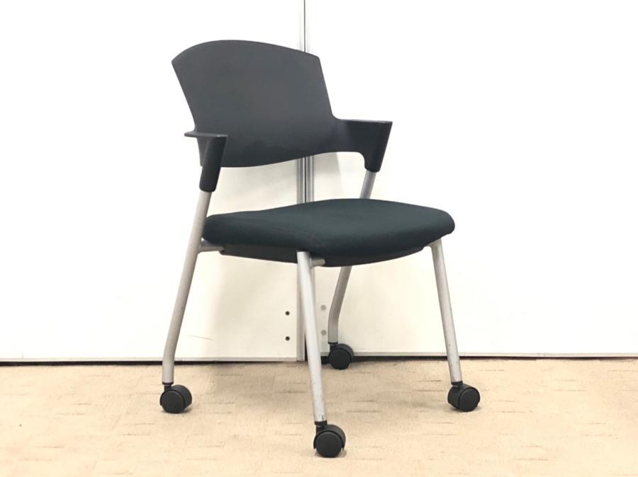 【シンプルスマートなスタッキングチェア!分厚いクッションで長時間でも快適な座り心地!】■スタッキングチェア 肘付ミーティングチェア ■固定肘 ■キャスター付 ■ブラック ■背面樹脂/コクヨ(KOKUYO/プロッティ