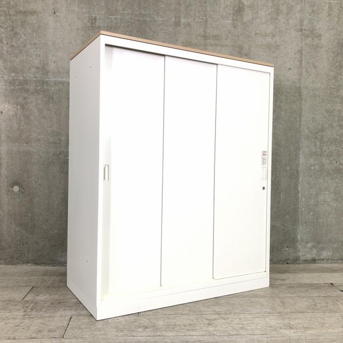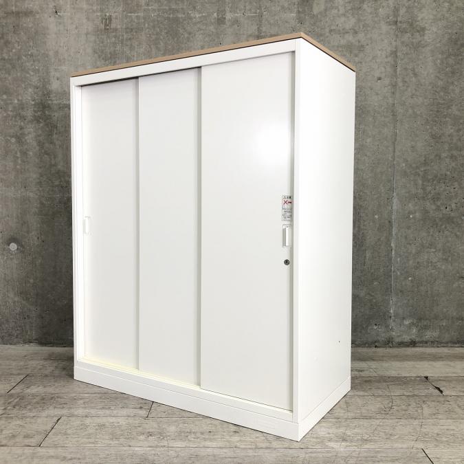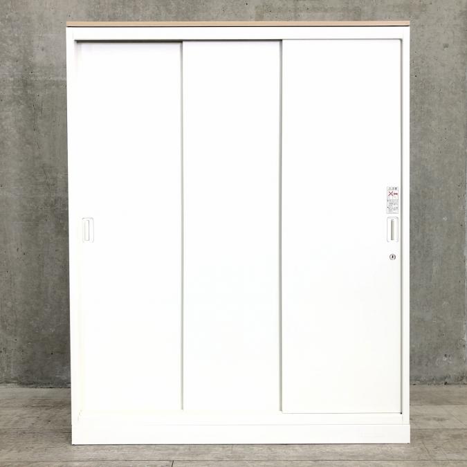 【スライド引き戸だから開閉スペースに困りません!】【人気のホワイト書庫!】■オカムラ(okamura)製 レクトラインシリーズ 3枚戸タイプ 引き違い書庫 ■色:ホワイト ■シリンダー鍵