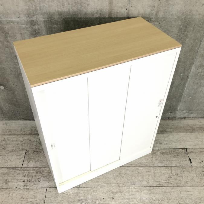 【3枚引き違いホワイトカラー】人気メーカー製で珍しい3枚引き違いタイプ書庫入荷しました!【天板付き】- 茨城南店