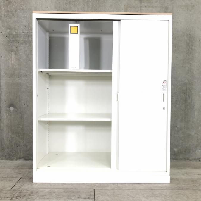 カウンターとしてもおすすめ!使い勝手抜群の天板付き2枚引き違い書庫が入荷! ■オカムラ/レクトライン/ホワイト 2枚引き戸 ホワイト天板付き