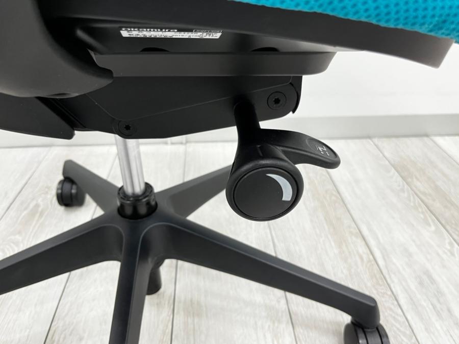 - 座面右下のダイヤル操作で、リクライニングの強弱調整が行えます。これまでのダイヤル式よりも、少ない回転数で、最弱?最強の調整が可能です。