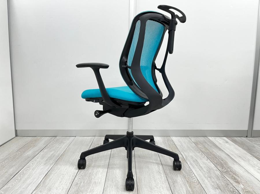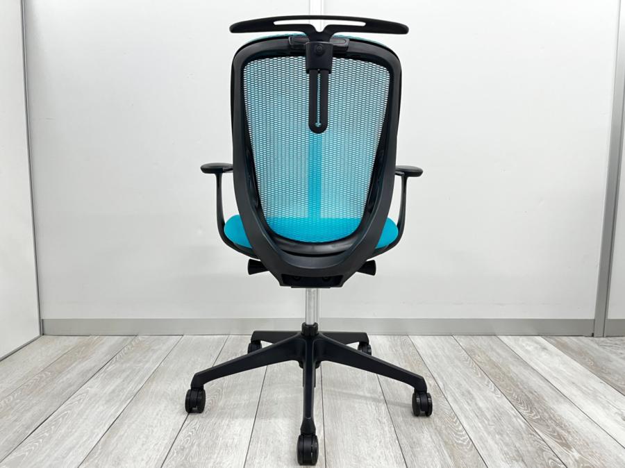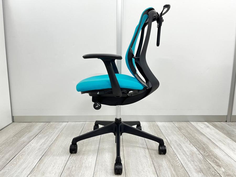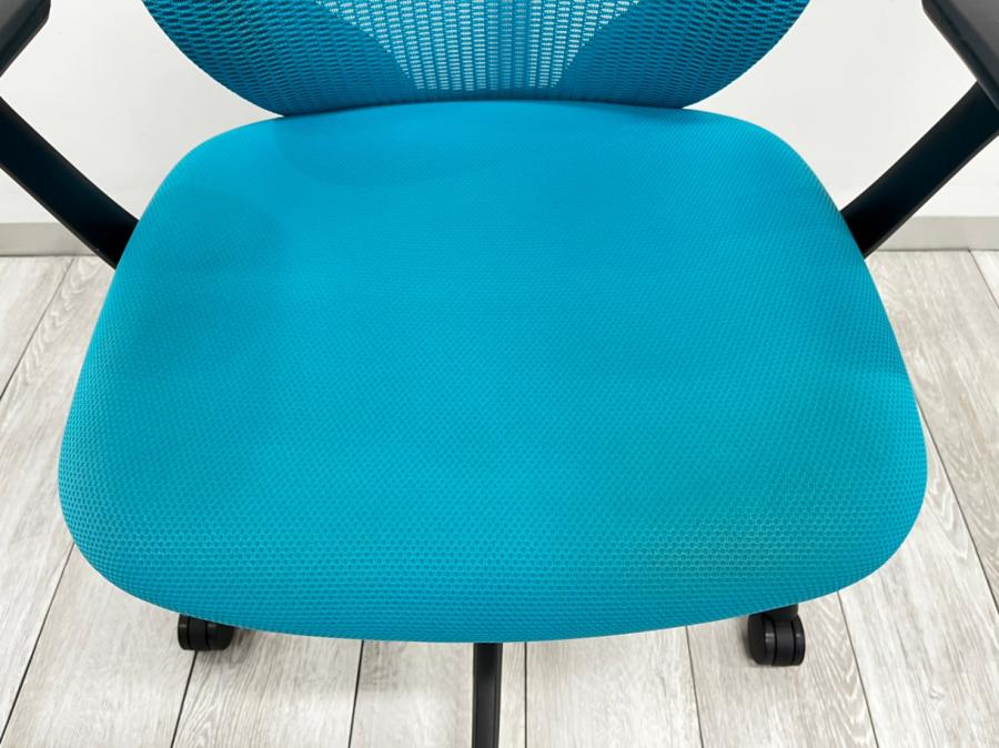 【まるで手を添えて包み込まれるような優しい座り心地!】■オカムラ シルフィーチェア 可動肘付 ミディアムブルー ローバック ※キズあり商品のためお安く!【Okamrua Sylphy】★