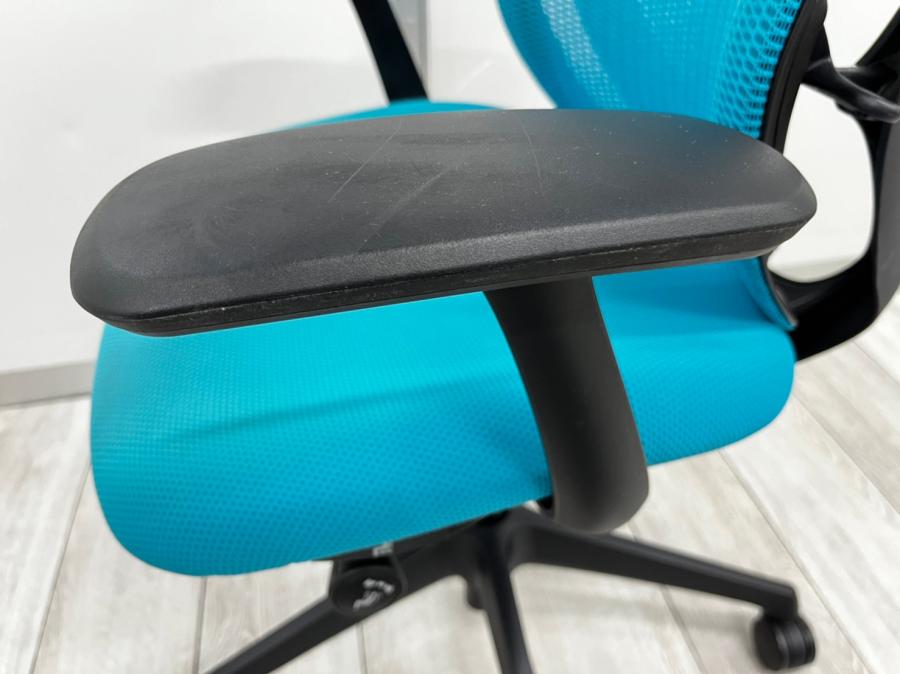 色もブルーグリーン色でオフィスでもご自宅でも使用できるチェアでございます!