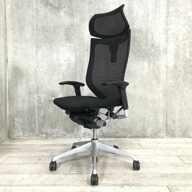 【長時間の着座でも疲れにくい!ベストなポジションが得られる先進設計!】■オカムラ バロンチェア 肘付 ブラック ハイバック シルバーフレーム ■良い椅子は腰を守る投資です!【Okamura Baron】