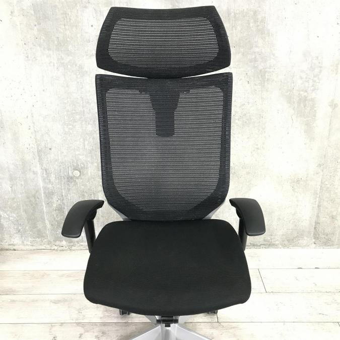 【オフィスの執務室、会議室におすすめ!】■オカムラ(okamura)製 バロン(Baron)チェア 肘付き ハイバック ■背・座面メッシュ ■可動肘 ■ヘッドレスト付き ■ブラック【硬めの座面が大人気!国産メッシュチェアの代表格!】