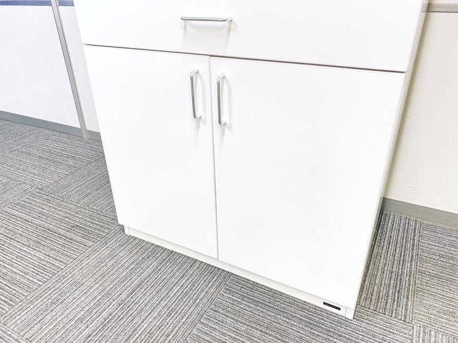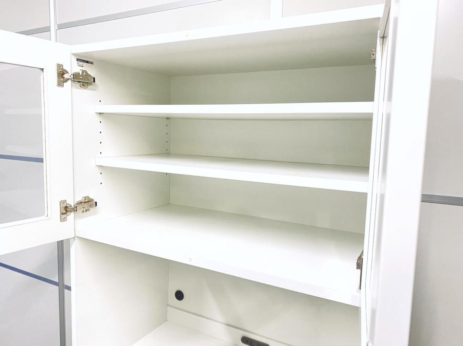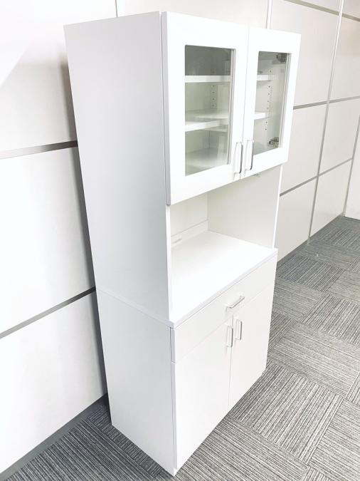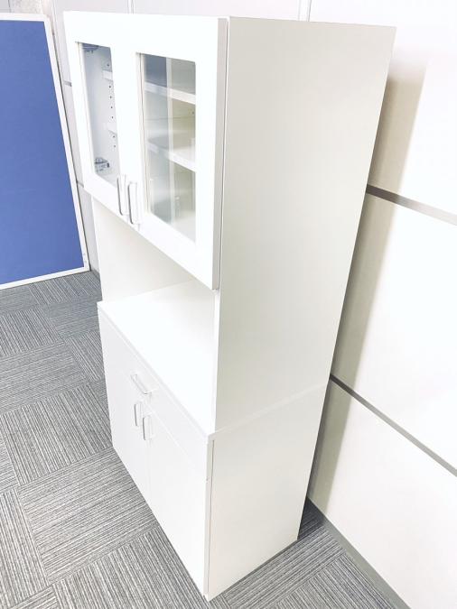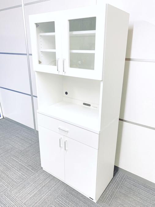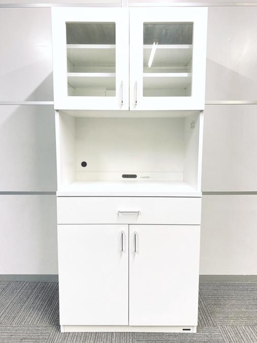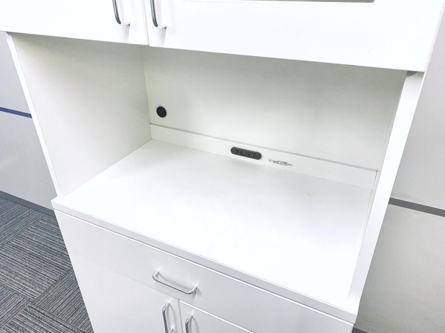 【給湯スペースにオススメ!】■キッチンキャビネット(コンセント付) オカムラ製 ホワイト ■木製食器棚・ビジネスキッチン- 川崎店