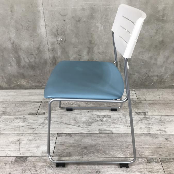 【値段で選ぶならコレ!】■イトーキ スタッキングチェア エレックシリーズ ターコイズブルー ■アルコール清掃も可能なビニールレザー仕様!- 岐阜店