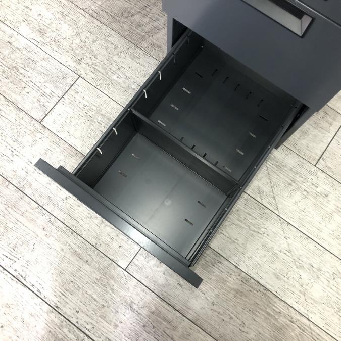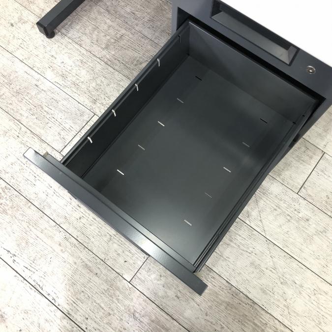 占有スペースを抑えつつ、収納庫を搭載した、機能的なオフィスデスク。