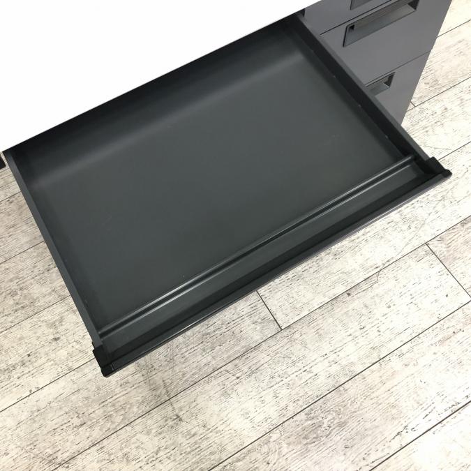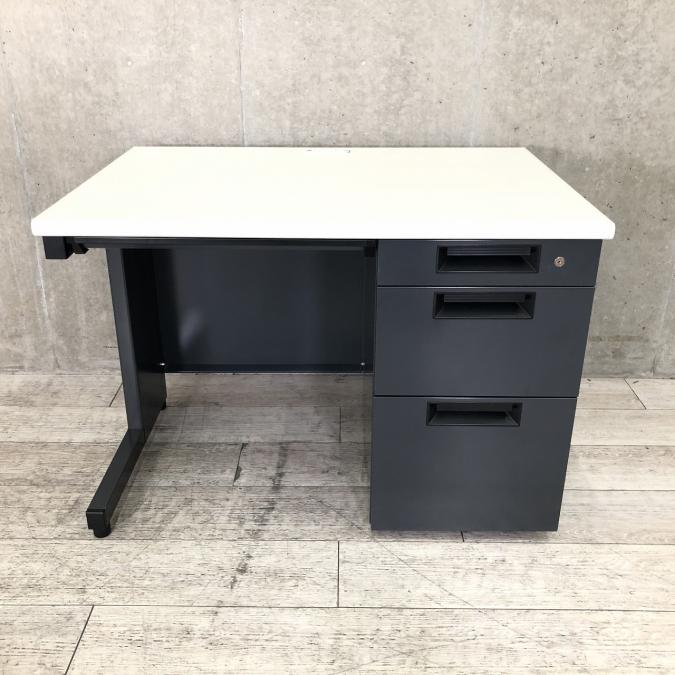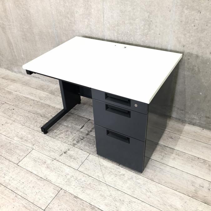 【あと1台】【コンパクトで省スペース】片袖机■天板:ホワイト ボディ:ブラック◆プラス製- 埼玉本店