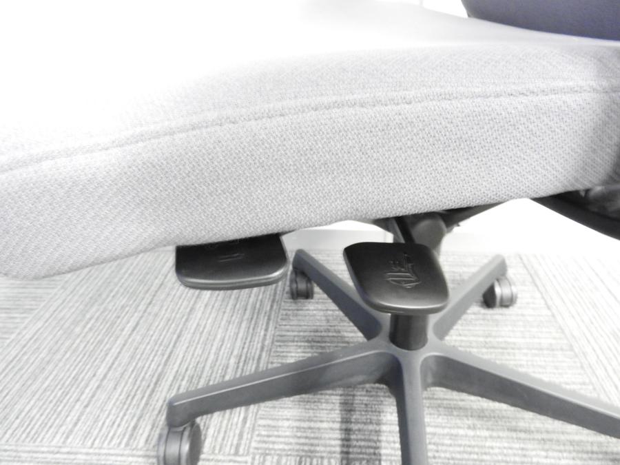 座面の左下にあるレバー操作で座面位置の上下調整(92mm、無段階)が可能です。