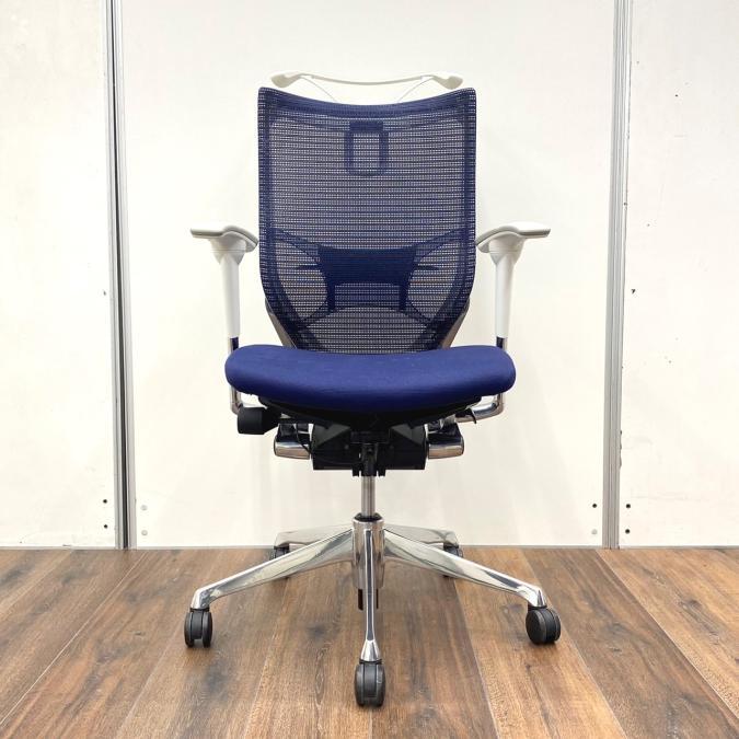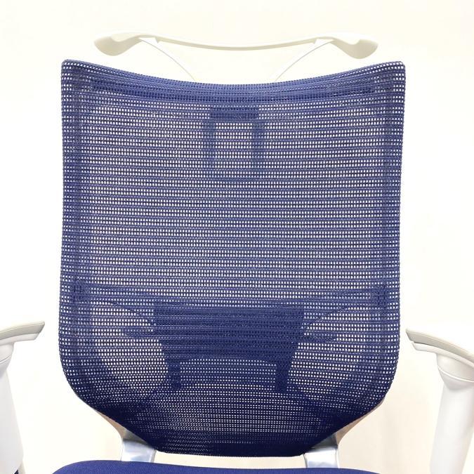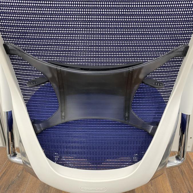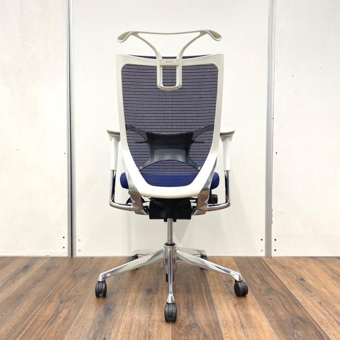 【オフィスの執務室、会議室におすすめ!】■オカムラ(okamura)製 バロン(Baron)チェア 肘付き ハイバック 背面メッシュ ■可動肘 ■ダークブルー × ホワイトシェル【硬めの座面が大人気!国産メッシュチェアの代表格!】【状態良好品!】