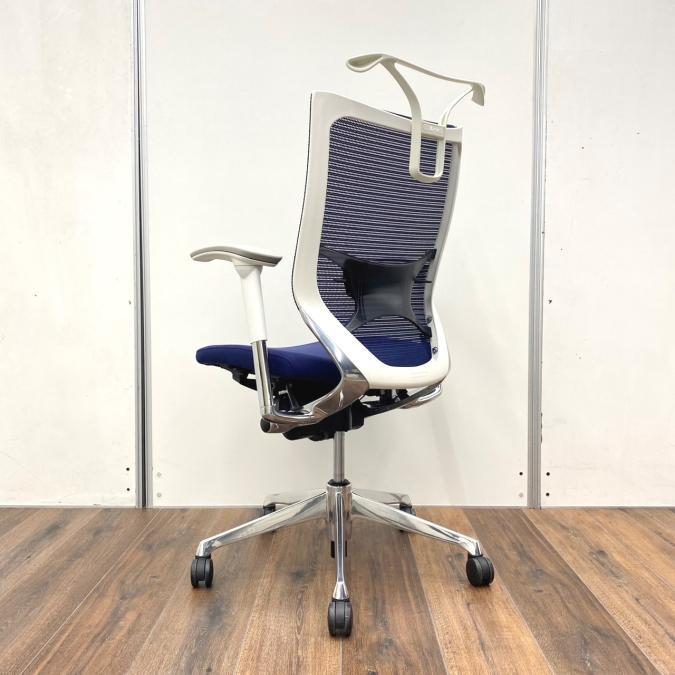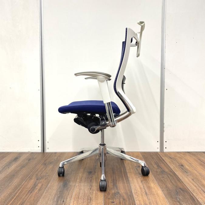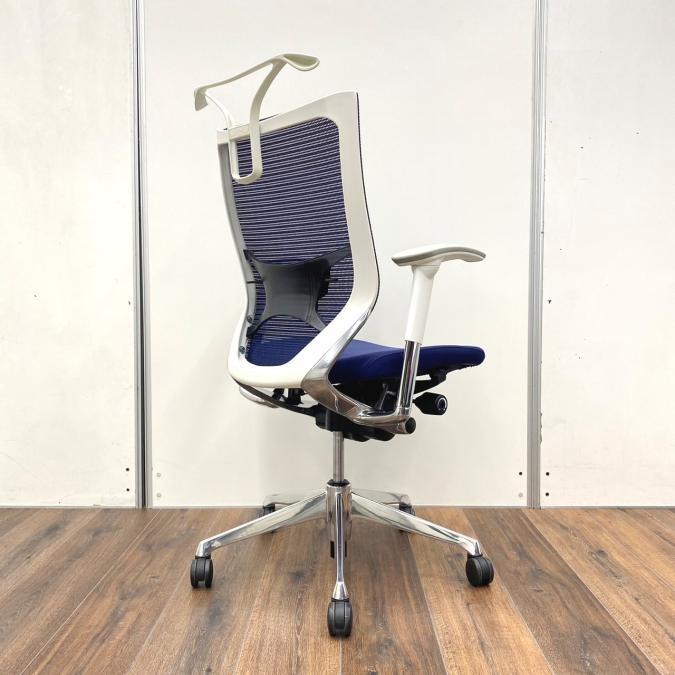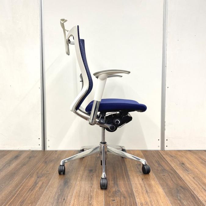 【新品ヘッドレスト付き】オカムラ/バロン/ブルー×ホワイト/可動肘/座面クッション【AD】