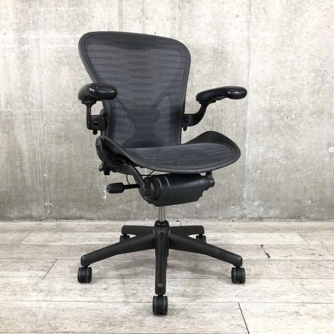 【★状態イマイチのためお安く!】■ハーマンミラー製 アーロンチェア Bサイズ 固定肘 ※キズあり・ランバーサポート無・昇降ガス圧弱めのためお安く!【訳あり特価品】