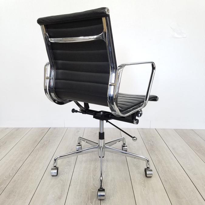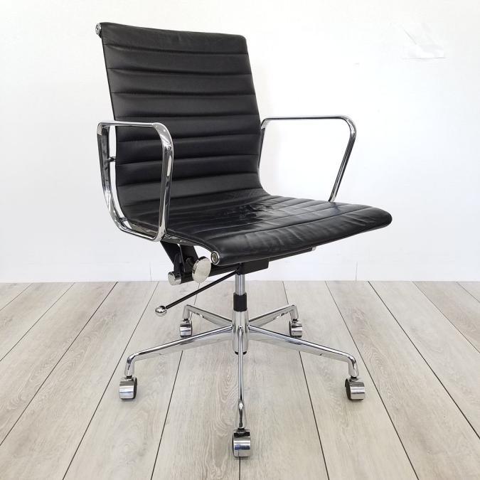 【12脚限定!!】シンプルながら高級感のあるチェアです!中古 OAチェア ローバック 肘付き ブラック リプロダクト品 合皮 フェイクレザー- オフィスチェア店