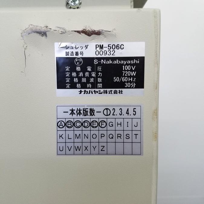 【1台入荷】ナカバヤシ製の業務用シュレッダーが入荷!中古 シュレッダー OA機器 精密機械 セキュリティ 個人情報保護法 PM-506C- 豊中・尼崎店