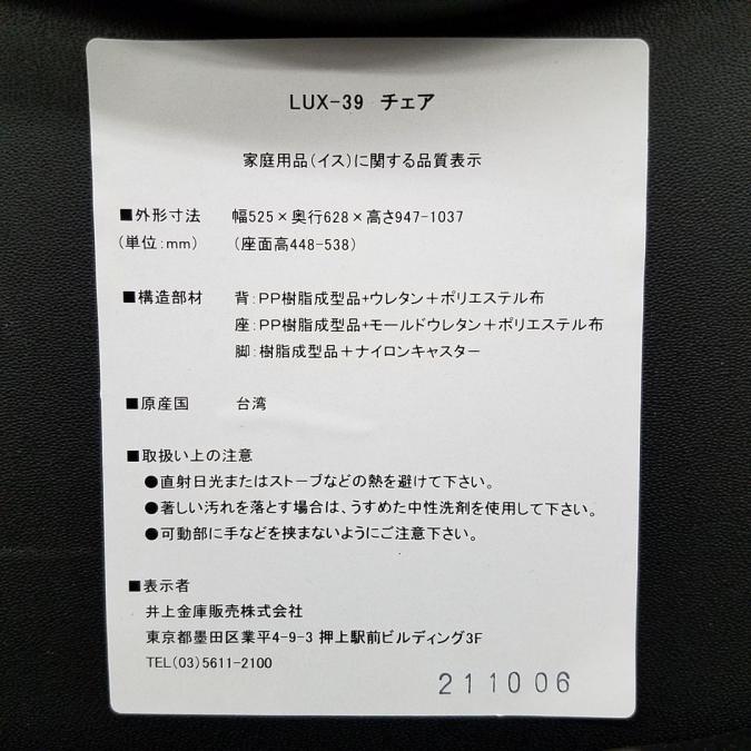 【新古品】 LUX-39 井上金庫 肘付ハイバックチェア 413152