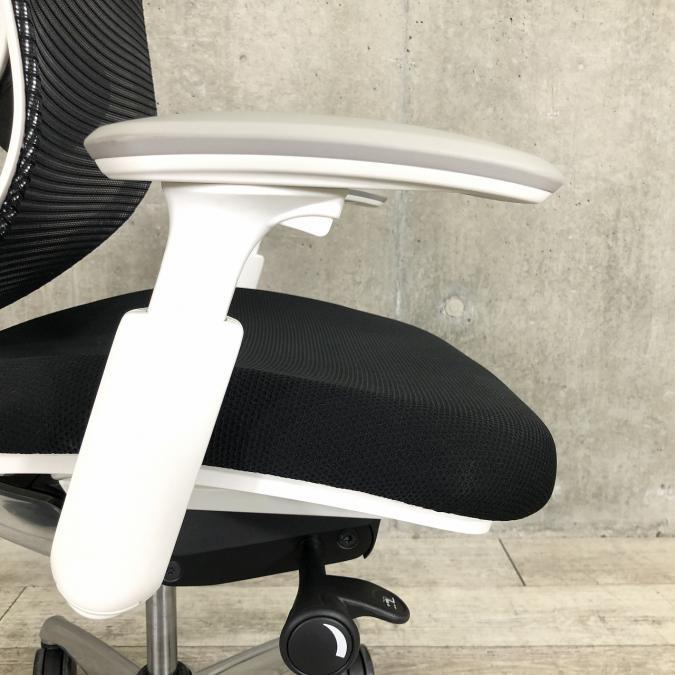 - 肘パッド部の上下(1D)、角度(2D)、前後(3D)、左右(4D)の調整が可能。可動幅は、上下100mm、内側20度、外側10度、前後40mm、左右片側25mmです。