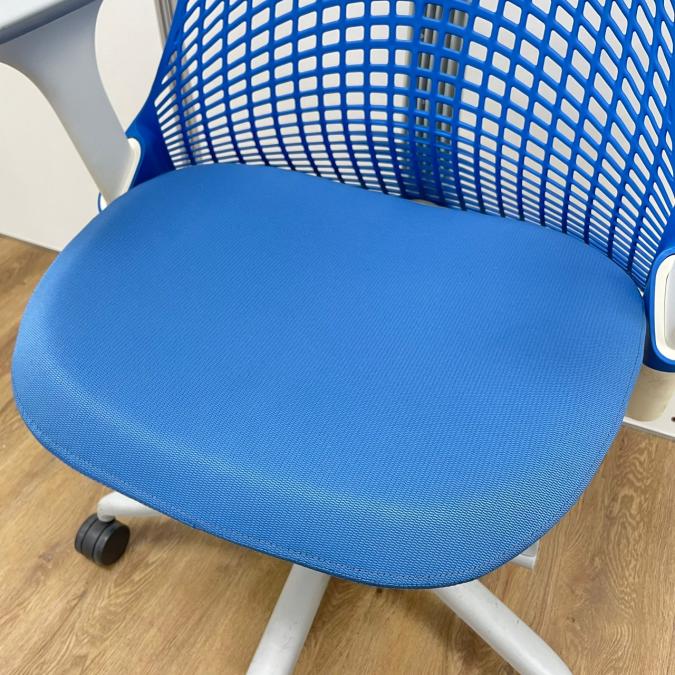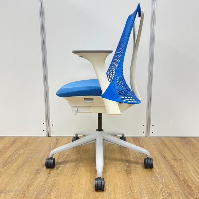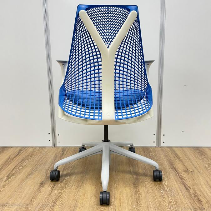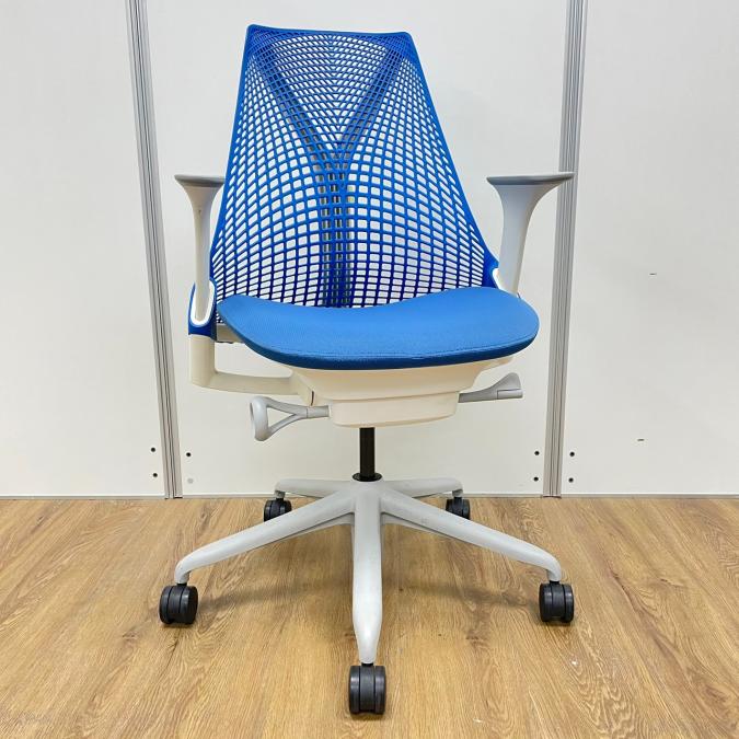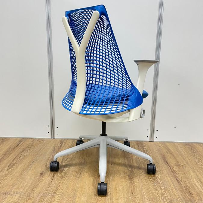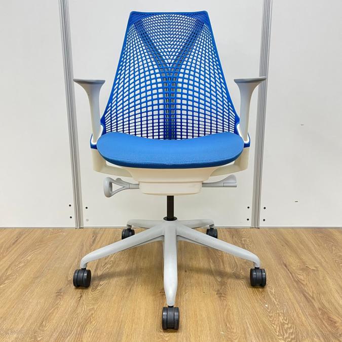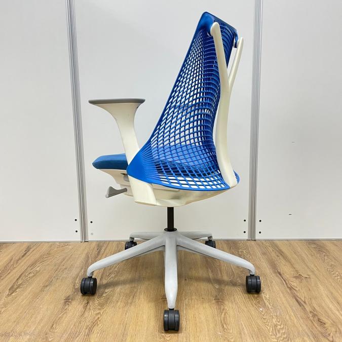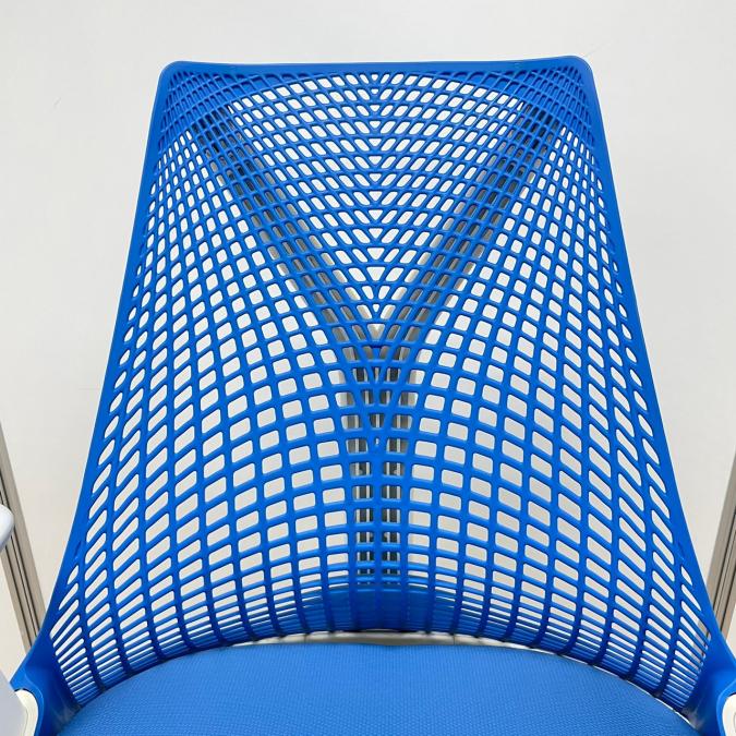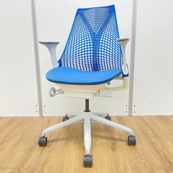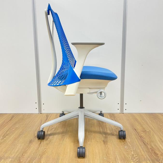 【デザイナース家具】ハーマンミラー製 セイルシリーズ 固定肘 前傾なし ブルーカラー 肘付きハイバックチェア!!- 京都東寺店