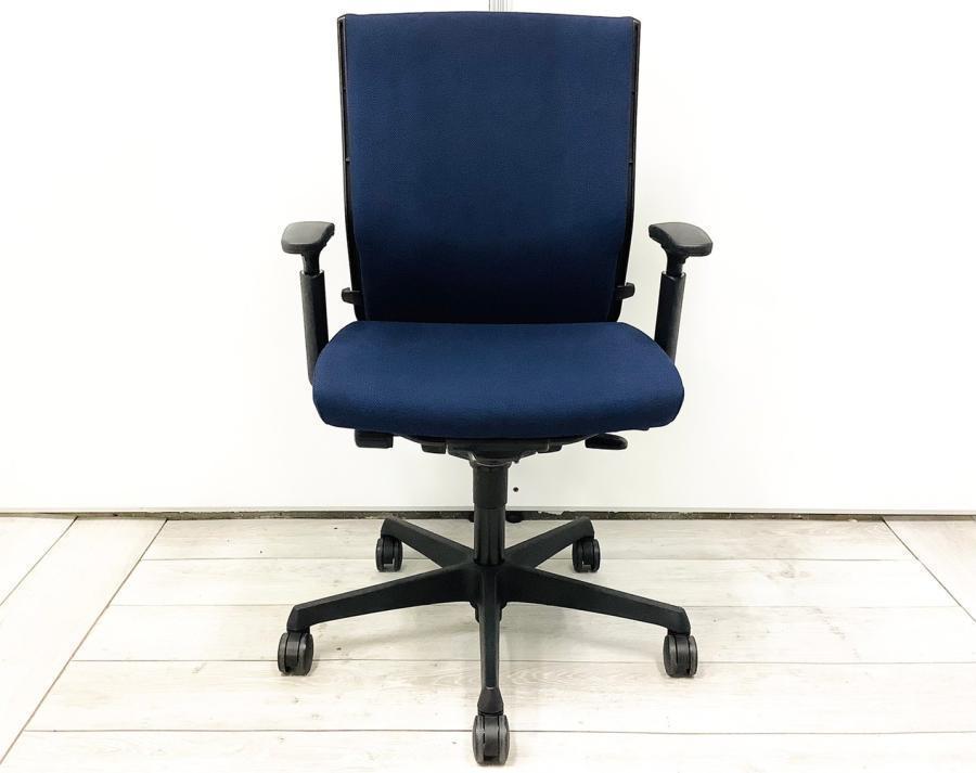 【肘付きオカムラのミドルクラスチェア!】 ■オカムラ/エスクード/ダークブルー/可動肘/ハイバック- 池袋店
