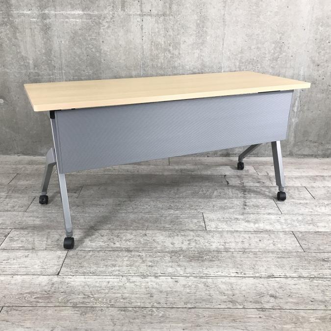 【W1500の折り畳みテーブルが入荷!】◆オカムラ/フラプター ナチュラル 木目 サイドスタックテーブル 収納 中古 博多 天神 九州最大級 オフィスバスターズ